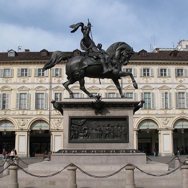 Il monumento equestre di re Carlo Alberto di Savoia (1798 – 1849) fu eseguito in bronzo tra il 1856 e il 1860 da Carlo Marochetti (Marocchetti) (1805 – 1867) e posto nel 1861 sull’omonima piazza.