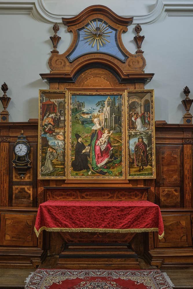 Dalla parte destra del presbiterio si accede al chiostro della canonica, ultimato nel 1495, ma con resti romanici, cinto su tre lati da un portico, e su due da una loggia.