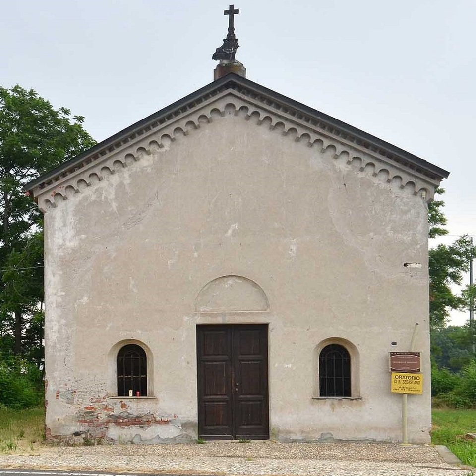 I dipinti dell’abside sono piuttosto rovinati dall’umidità e raffigurano il Cristo Pantocratore con a fianco i simboli degli Evangelisti, nella fascia inferiore sono raffigurati gli Apostoli con al centro S. Sebastiano. Nell’absidiola a destra dell’altare è raffigurata una Crocifissione e in basso una bella Madonna in trono con Bambino e vari Santi e sante attribuiti anch’essi alla stessa bottega biellese, come la prima parte dell’interessante ciclo della Passione e Resurrezione che si sviluppa per grandi quadri su tre pareti formando una lunga fascia sovrastata da un fregio interrotto da 12 medaglioni raffiguranti personaggi biblici; profeti e patriarchi. Il ciclo fu completato in seguito dalla bottega novarese di Tommaso Cagnola.