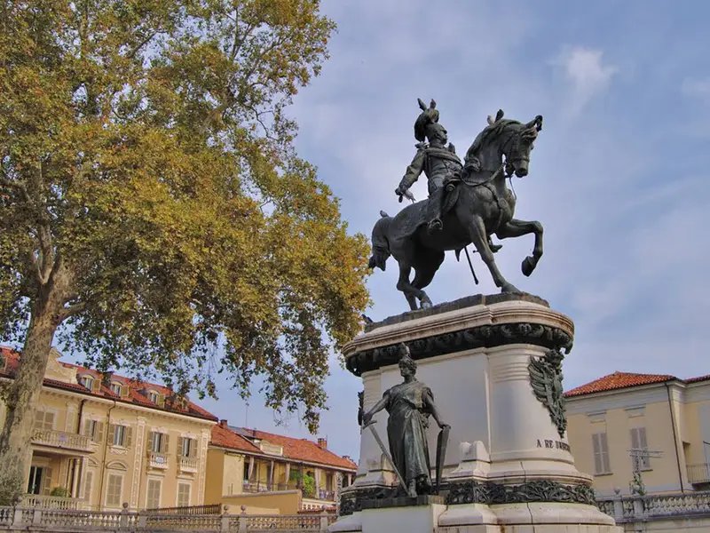 Lo splendido albero è inserito dal 2015 nell’elenco degli alberi monumentali del Piemonte e fa da “sfondo” al monumento a Umberto I.
