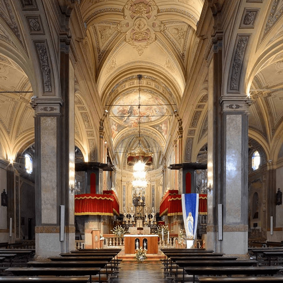 La parrocchiale dedicata a S. Colombano, già citata nel 1146, divenne sede di “collegiata”.