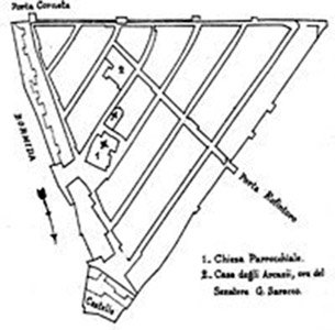 La torre rappresenta una delle poche testimonianze rimaste dell’antico borgo fortificato del XIII secolo dalla particolare forma di triangolo, ancora riconoscibile percorrendone le vie.