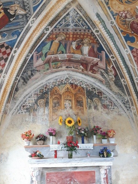 Opere di Pietro da Saluzzo tra il 1461 ed il 1471, gli affreschi si conservano in buonissimo stato e sono facilmente visibili grazie all’apertura costante della cappella.