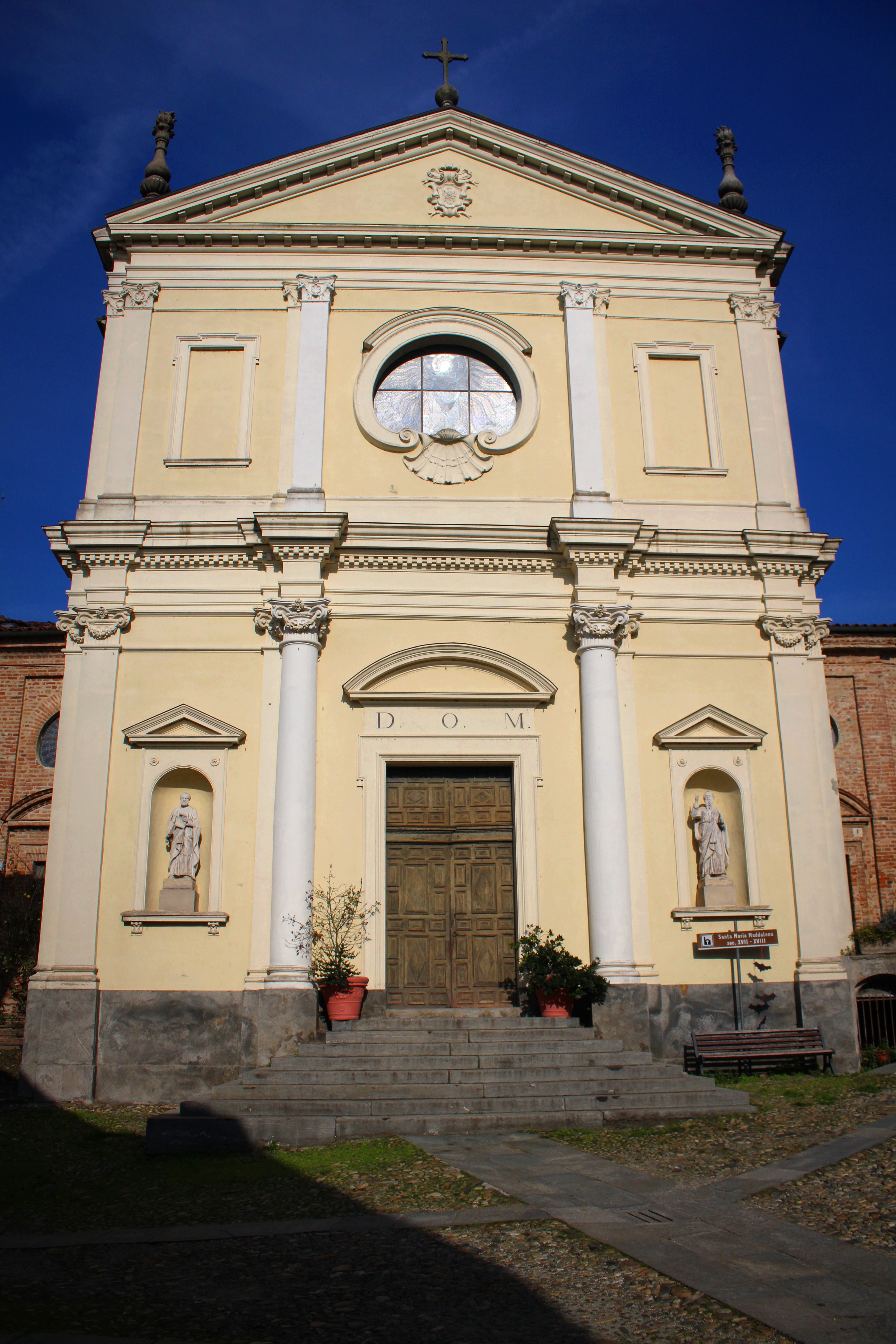 Troviamo inoltre due chiese dirimpettaie nella piazza principale, piazza Statuto: quella che guarda a sud, oggi sconsacrata, intitolata alla santissima Trinità (eretta nel 1711, sede della confraternita della santa Croce); quella edificata verso nord è l’ex chiesa Parrocchiale di S. Maria Maddalena (consacrata nel 1730). E’ possibile vederle aperte in occasione delle feste patronali, in particolare la Festa del Pisello di fine maggio e la festa dell’Assunta il 15 agosto (festa dell’Abbadia).