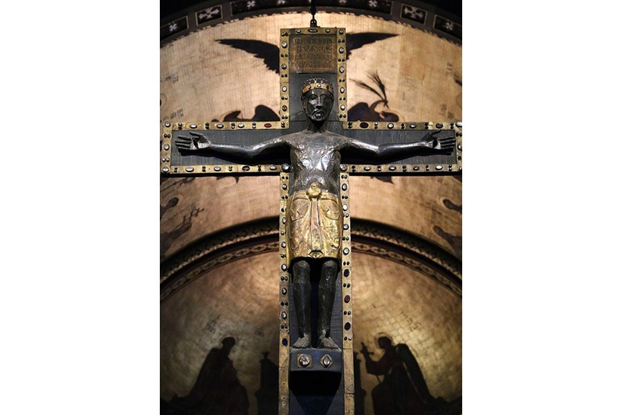 Un bel Crocifisso in legno rivestito con lamine di argento è una delle più importanti opere di oreficeria del XII secolo in Piemonte.