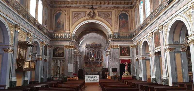 Da notare sulle pareti laterali della navata centrale i 14 pregiati affreschi del Morgari rappresentanti i momenti più espressivi della vita terrena di Gesù Cristo e la sua passione.