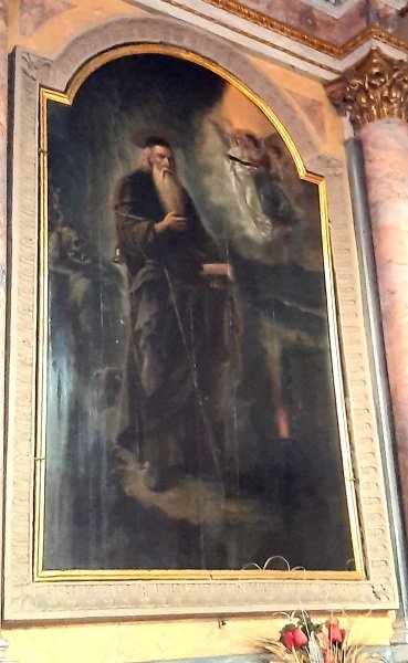Infine, segue un terzo altare consacrato alla Beata Vergine del Carmine, che vi è raffigurata in un bel dipinto ad olio con a destra l’immagine di S. Teresa e a sinistra quella di S. Elisabetta.