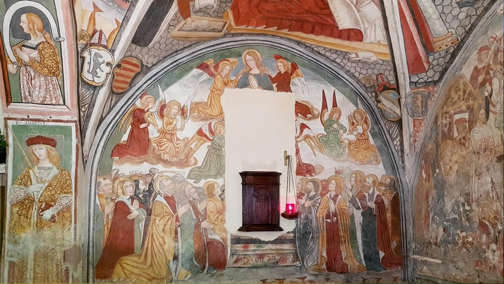 Ai piedi del castello si trova l’antica parrocchiale dove rimangono tracce romaniche e gotiche. Il notevole interesse della chiesa è negli affreschi: nella navata centrale a sinistra si trovano affreschi con Santi del novarese Daniele de Bosis firmati e datati 1496 e a destra un ciclo di affreschi con le Storie della Vita della Vergine e di Gesù attribuiti alla sua bottega e datati 1515.