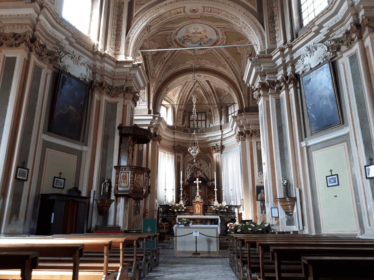 Questa chiesa si trova vicino alla stazione ferroviaria di Cressa. L’esterno (a mattoni a vista) non lascia presagire la bellezza celata al suo interno.