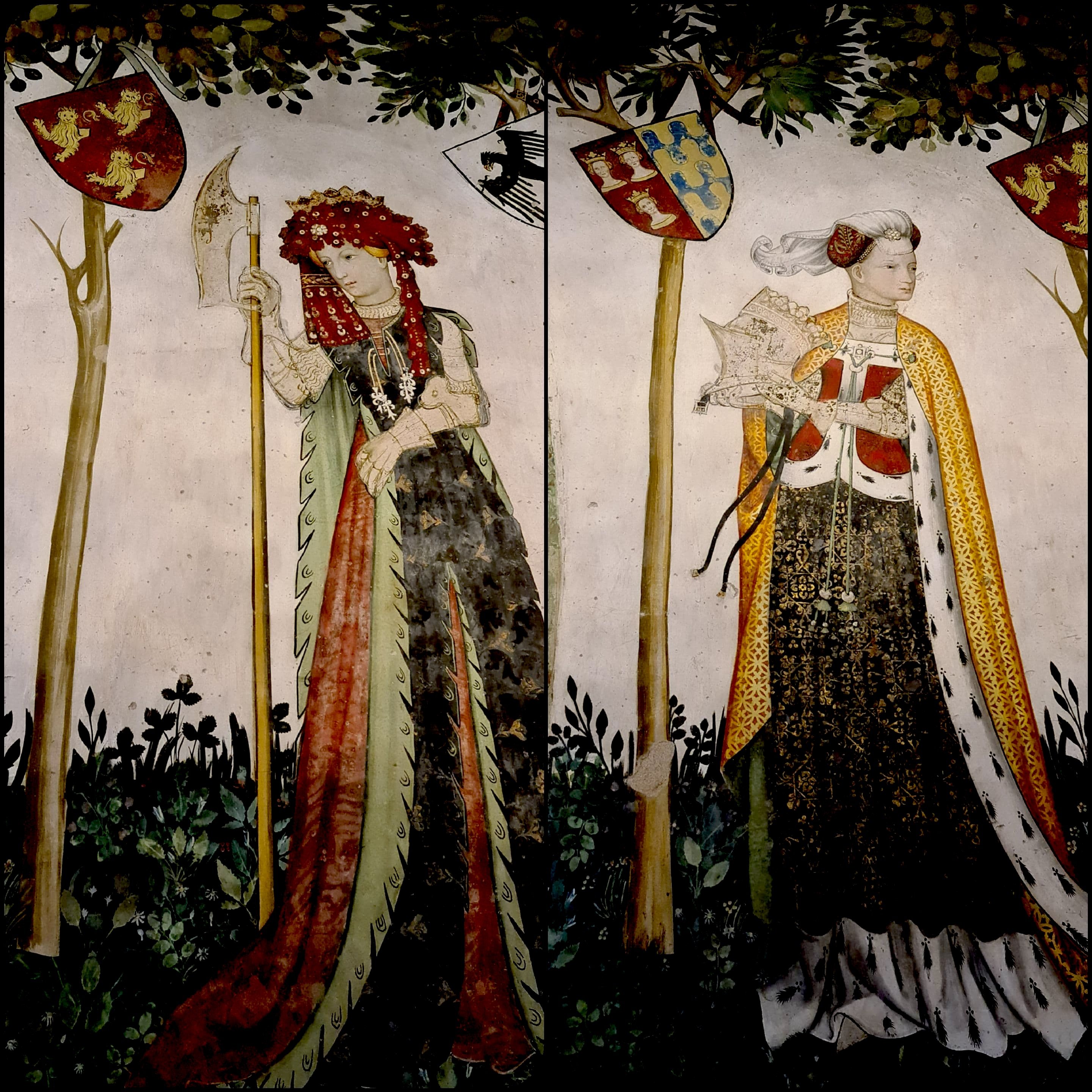 Un altro esempio significativo sono i “Nove Prodi e Nove Eroine“, che celebrano l’eroismo militare e le virtù cavalleresche. Questi personaggi, che raffigurano figure storiche e mitologiche, non solo celebrano il valore individuale, ma anche la forza morale e l’onore associati al casato Saluzzo. L’uso di queste immagini nei dipinti riflette il bisogno di legittimare il potere della famiglia, facendo riferimento a esempi storici ed eroici che incarnano valori morali universali, ma anche specifici per il contesto di guerra e politica dell’epoca.