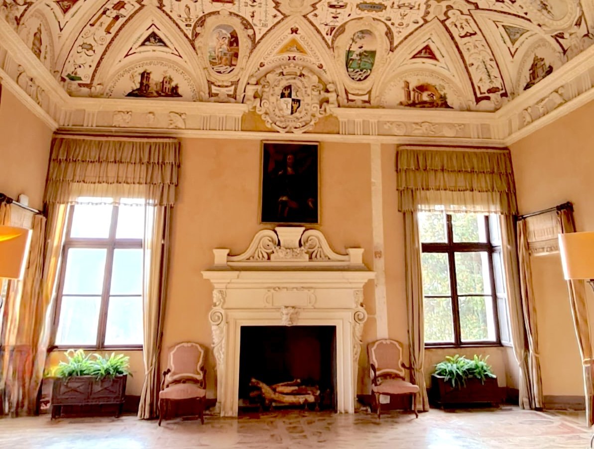 Il contributo di Valerio Saluzzo della Manta, erudito e uomo di cultura, si estende anche alla decorazione delle stanze cinquecentesche del castello, come la Sala delle Grottesche. Queste decorazioni mostrano un netto cambiamento nelle estetiche e nei concetti artistici, segnando la transizione dal tardo Medioevo al Rinascimento. L’uso di motivi ornamentali tipici delle grottesche, che derivano dalle scoperte archeologiche romane e dal gusto per il decorativismo, riflette l’interesse per l’antichità e la ricerca della bellezza ideale che caratterizza il Rinascimento.