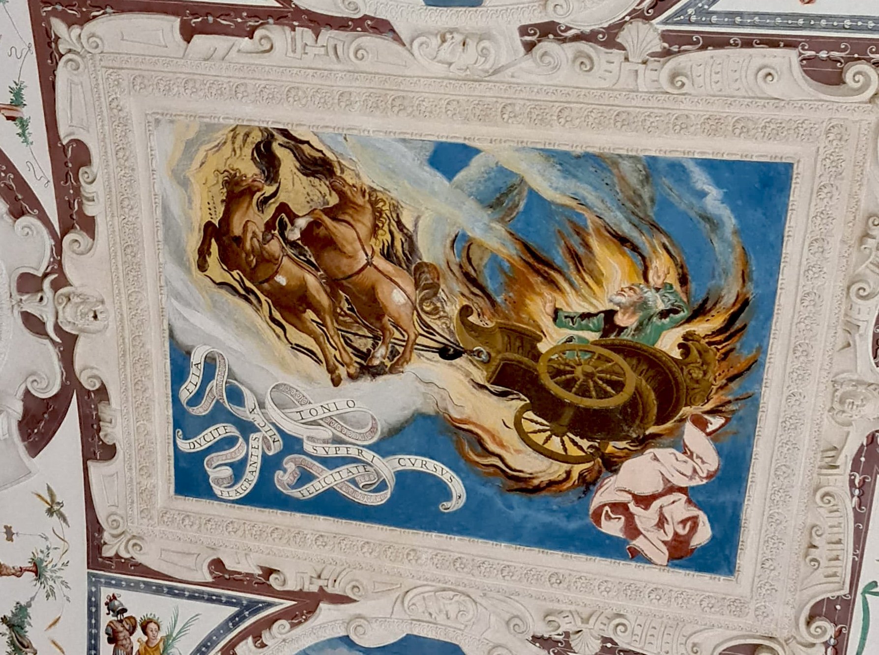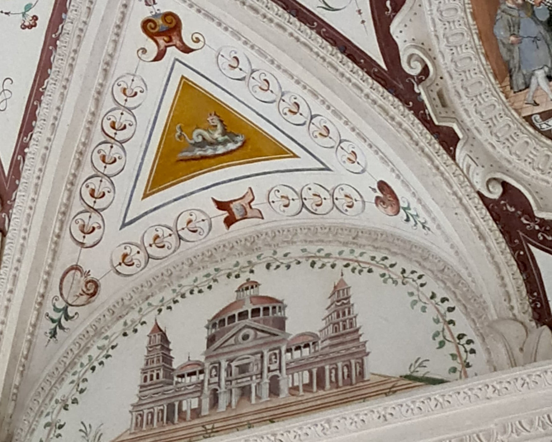 Le grottesche ed i giochi linguistici nelle decorazioni della sala non sono solo un esercizio stilistico, ma un’espressione dell’intellettualismo rinascimentale, che univa arte e filosofia. Valerio Saluzzo della Manta, con il suo approccio simbolico ed allegorico, ha saputo portare all’interno del castello un’arte che stimolava la riflessione sulla natura umana e sulla politica, invitando gli ospiti a contemplare valori morali e spirituali in modo più complesso e profondo rispetto ai temi medievali. Questo riflette un cambiamento nell’approccio alla cultura, dove l’arte non è solo decorazione, ma un mezzo per stimolare il pensiero e la discussione intellettuale.