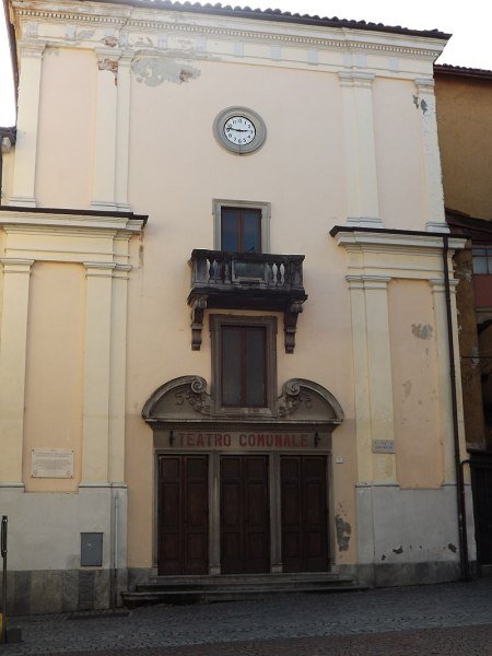 Soppressi gli ordini religiosi, il Comune nel 1802 prese possesso dello stabile destinandolo a propria sede oltrechè ad uso del collegio convitto. Nel vasto locale della chiesa si decise nel 1860 di trasferire il teatro comunale; il progetto di ristrutturazione venne redatto nel 1865 dall’architetto ing. Pier Giuseppe Zerboglio di Cuorgnè ed il teatro venne ultimato l’anno seguente.