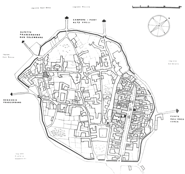 All’imbocco della via Arduino sorgeva la porta principale, detta “Piè del Borgo”.