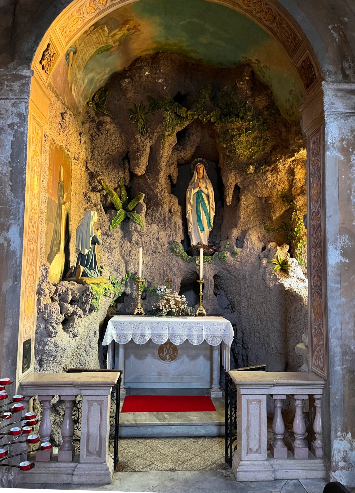 A chi entra in Chiesa, dalla parte destra, dopo il battistero, si presenta la bella cappella della Madonna di Lourdes con una artistica grotta.