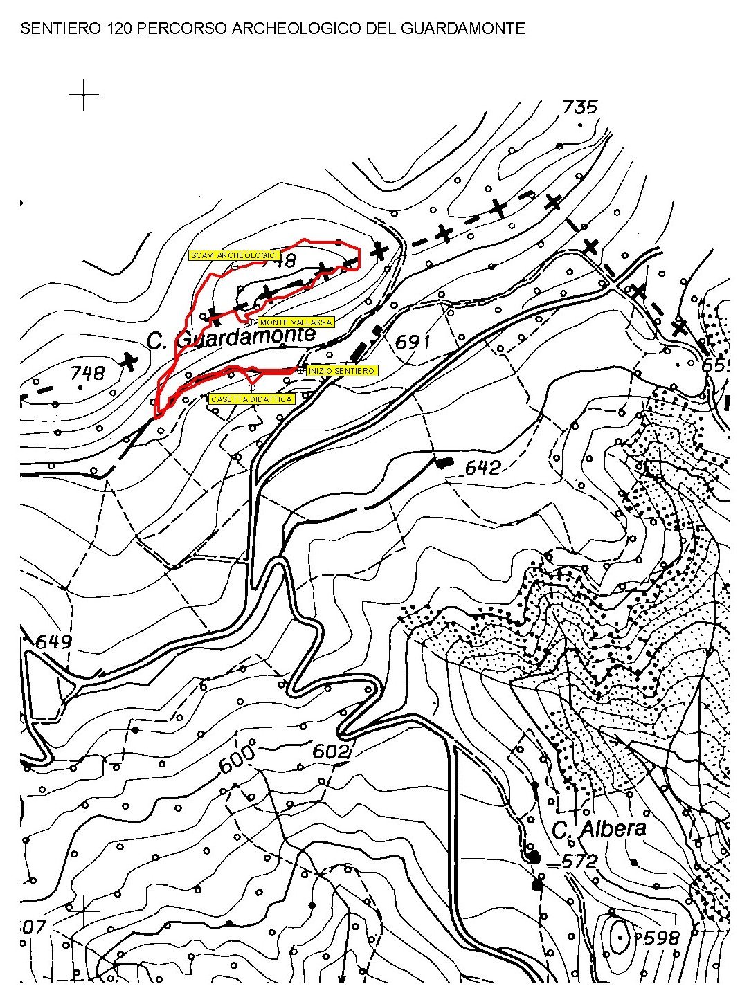 Il percorso archeologico- naturalistico del Guardamonte (CAI 120) è un breve tracciato ad anello che si snoda sul crinale, tocca l’area che fu oggetto di scavi archeologici e la cima del Monte Vallassa (747m), dalla quale si gode un bellissimo panorama sulla Val Curone e sulle cime dell’Appennino.