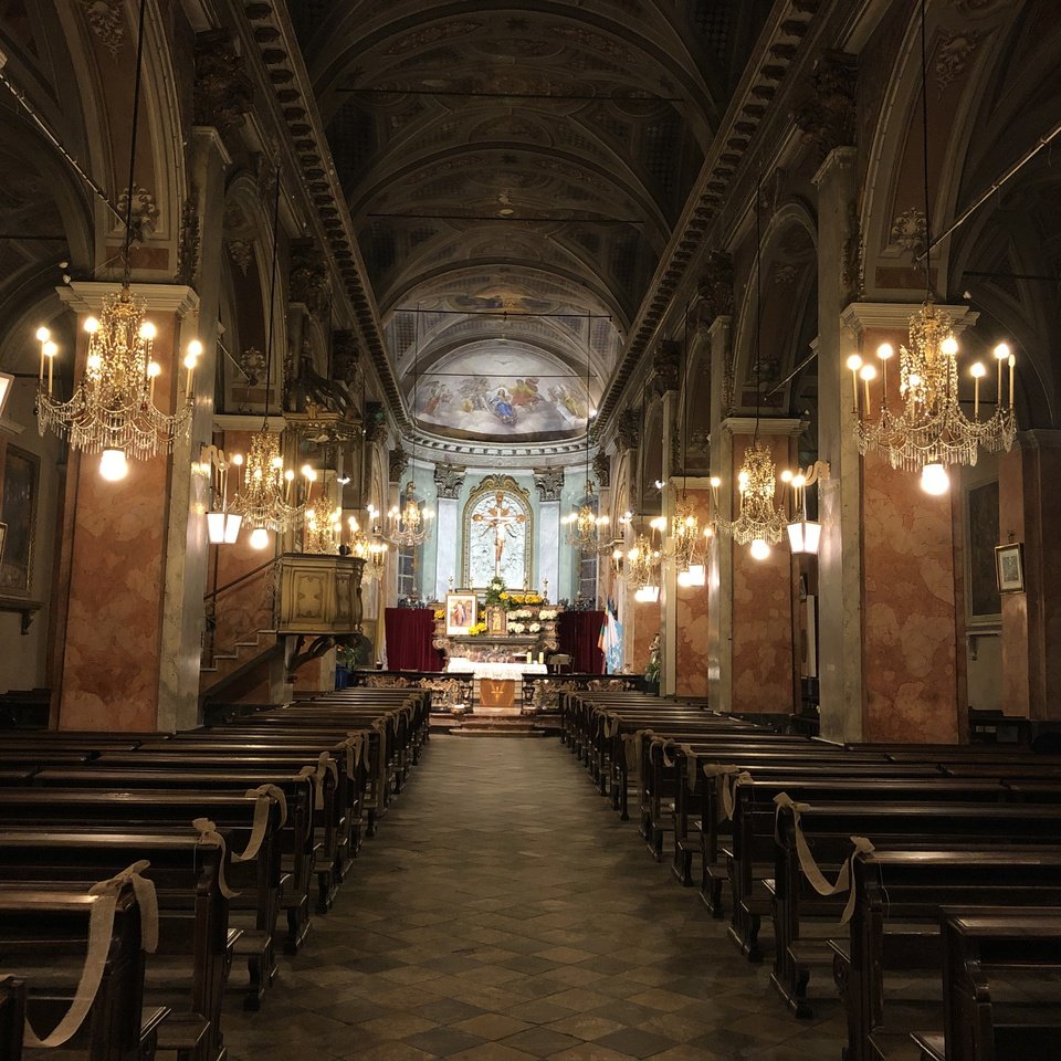 Costruita in stile romanico-gotico intorno alla metà del XV secolo, la chiesa fu edificata sulla preesistente Parrocchiale di San Pietro, divenuta la Cripta di San Valerio, tuttora visitabile.