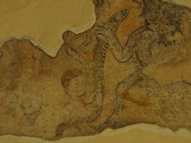 L’abside semicircolare è illuminata da una monofora a doppio strombo di forma rettangolare.