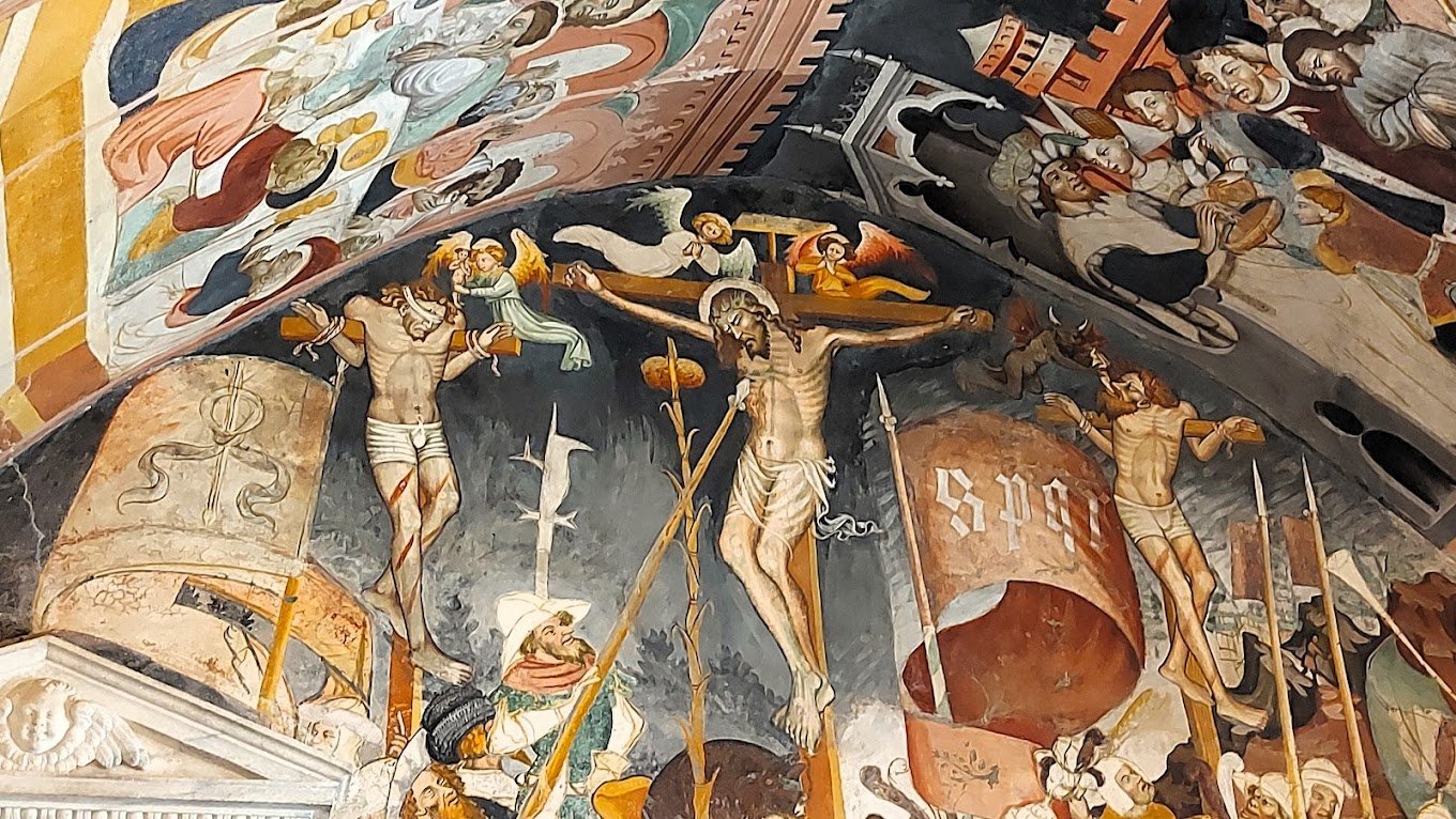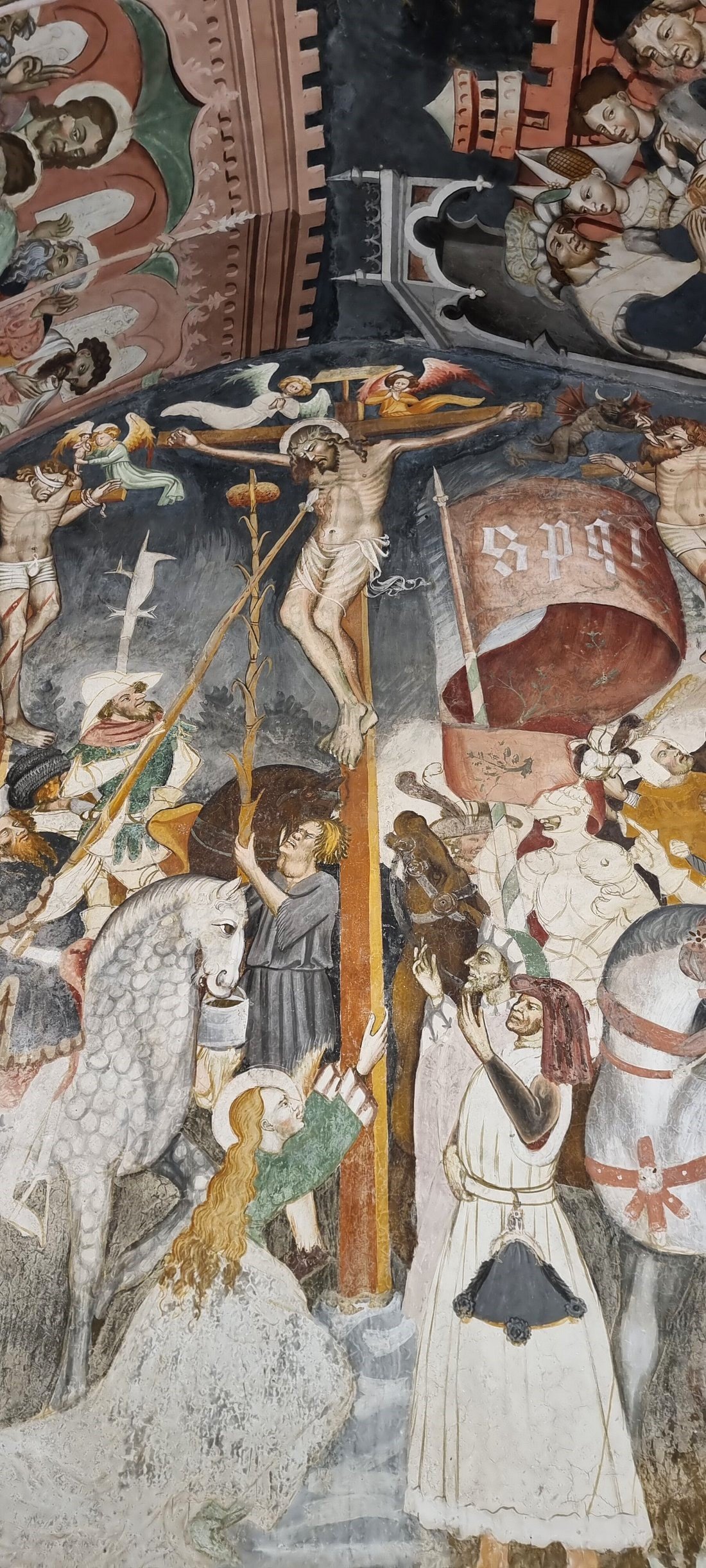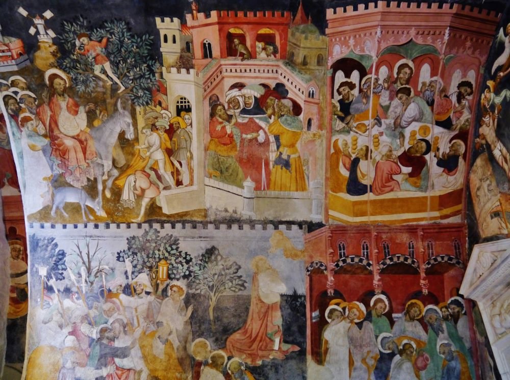 Il ciclo è databile forse intorno al 1427, quando la chiesa divenne parrocchiale. Nonostante l’inserimento del tramezzo alle spalle dell’altare, il ciclo mostra la fascia inferiore delle pareti con una decorazione a motivi geometrici; più in alto le Storie della Passione di Cristo si snodano su due registri senza soluzione di continuità, da sinistra verso destra. Sulla parete nord nord: l’Ingresso in Gerusalemme, il Tradimento di Giuda e una bella Ultima Cena; nel registro inferiore, la Lavanda dei piedi, la Preghiera nell’orto degli ulivi e la Cattura.