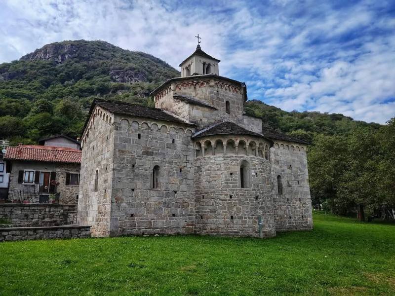 Si tratta di chiesa romanica a croce latina, con tiburio ottagonale e lanternino, ornato da una monofora e da tre bifore. L’edificio è realizzato con conci in serizzo ed in granito.
