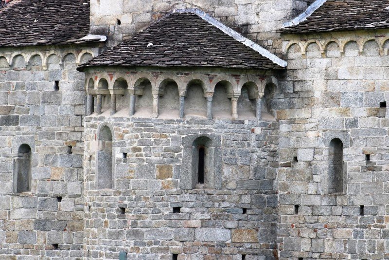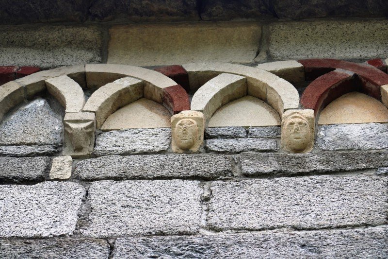 Di particolare effetto scenico le mensole degli archetti ed i capitelli della loggetta decorati con rudimentali teste d’animali e di uomini.