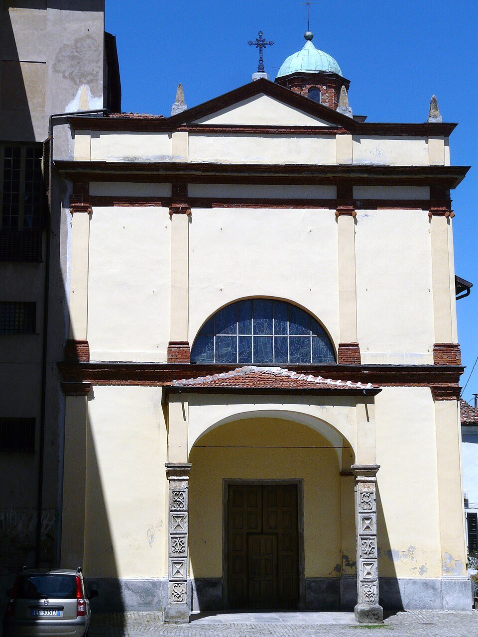 All’esterno della chiesa si trova un porticato fatto costruire nel Settecento dalla famiglia Delfini.