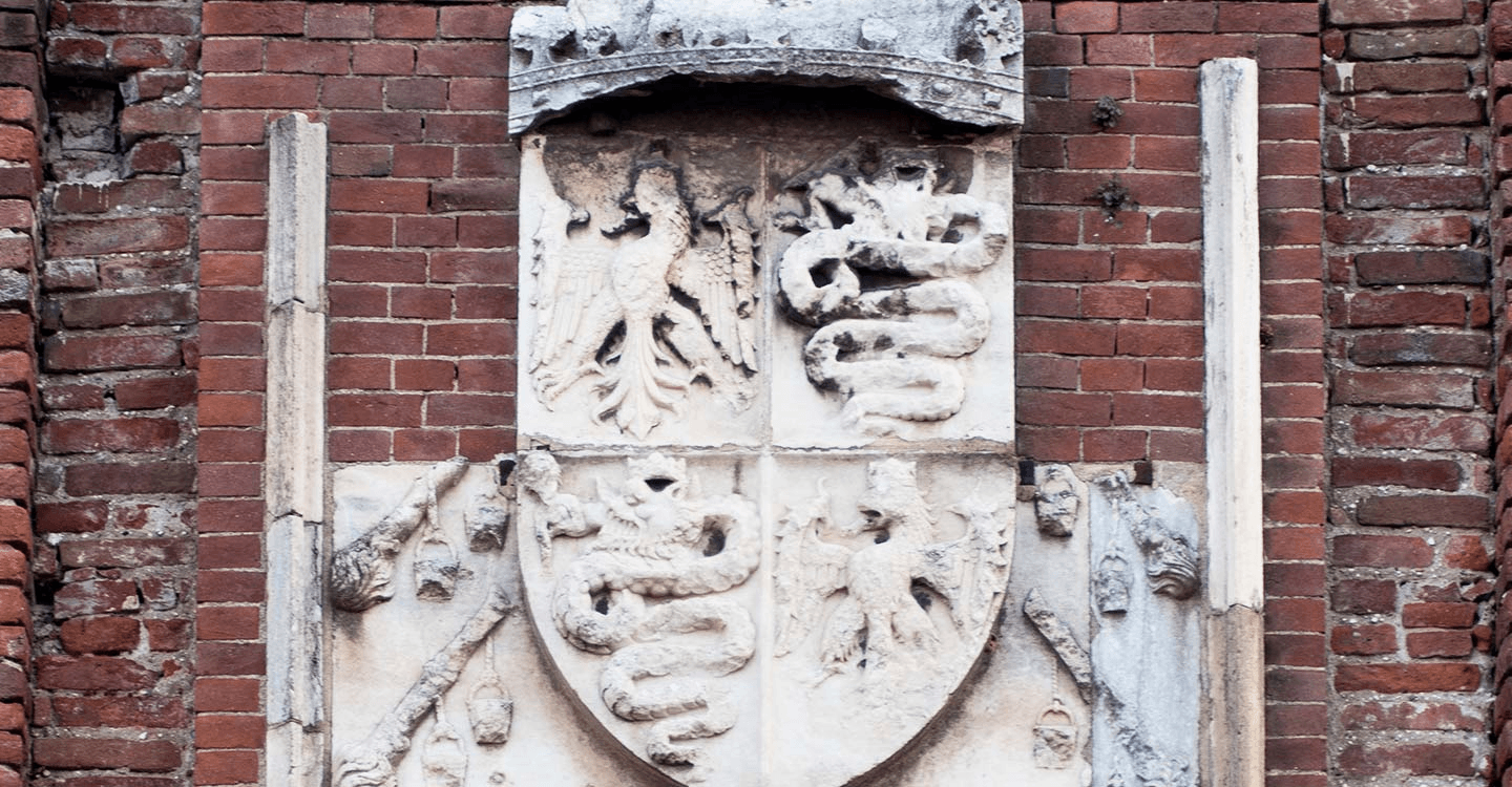 Nel 1476, Galeazzo Maria Sforza viene assassinato e, in ricordo del duca, la moglie Bona fa apporre sulla seconda porta d’ingresso al castello, uno stemma ducale, scolpito in marmo di Carrara, con la scritta: “GALEAZ MARIA SFORTIA VICECOMES DUX MEDIOLANI QUINTUS AETATIS ANNORUM XXXII” che in parte ancora si conserva sull’attuale ingresso del castello.