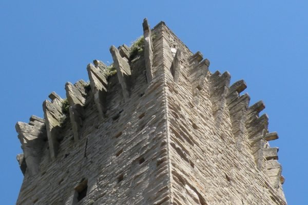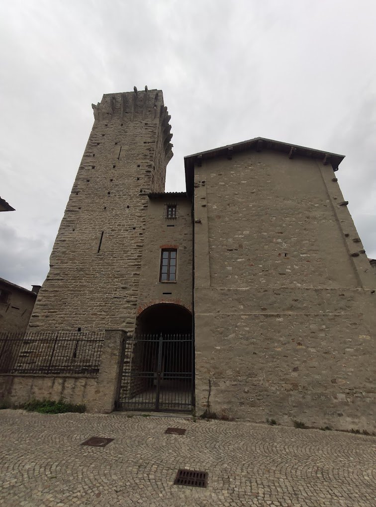 La torre medievale a base quadrata in pietra arenaria risale al XII secolo; è interessante e caratterizzata dalla presenza in sommità di beccatelli, gli elementi architettonici usati per sostenere parti sporgenti di un edificio, probabilmente reggevano un camminamento ligneo.