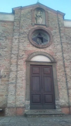 La facciata è a capanna, con motivo a fasce; al centro è l’ingresso, sopra di esso un rosone sovrastato da una nicchia in cui è collocata una statua della Madonna col Bambino. Ai lati, due monofore con arco a sesto acuto.