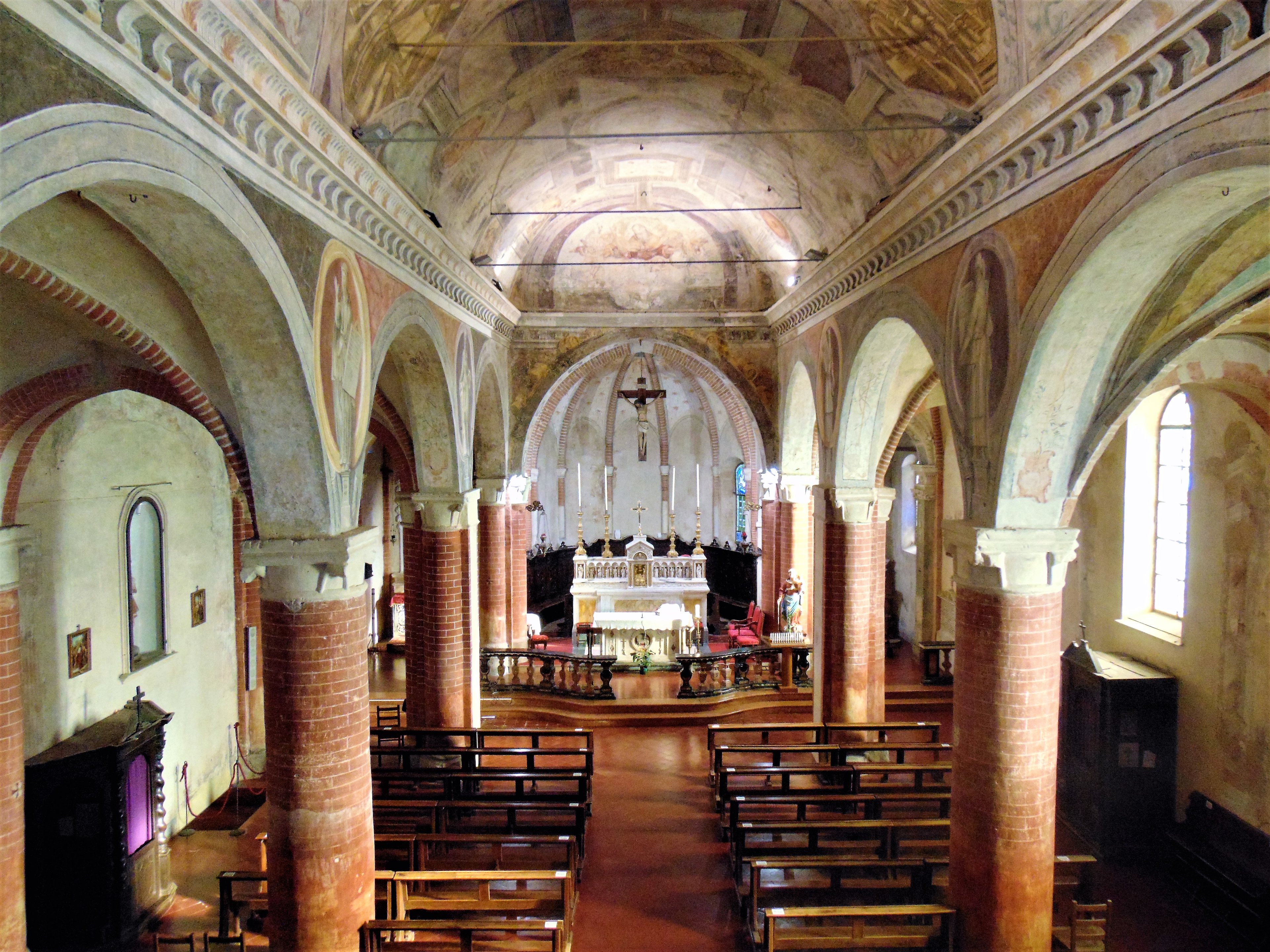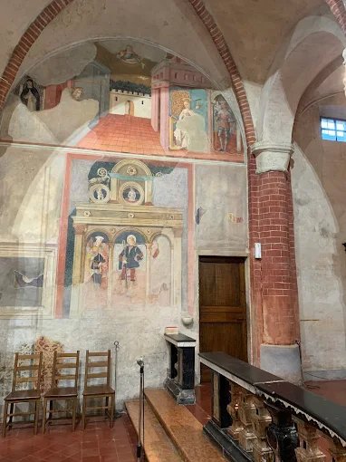 Pareti e volte conservano affreschi del XV e XVI secolo, in parte attribuibili alla bottega dello Spanzotti.