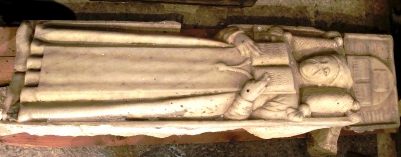 Nella seconda cappella destra si conserva una lastra tombale quattrocentesca con la figura giacente di un priore del monastero, forse Antonio Pettenati da Verzuolo.