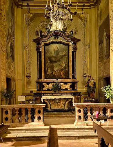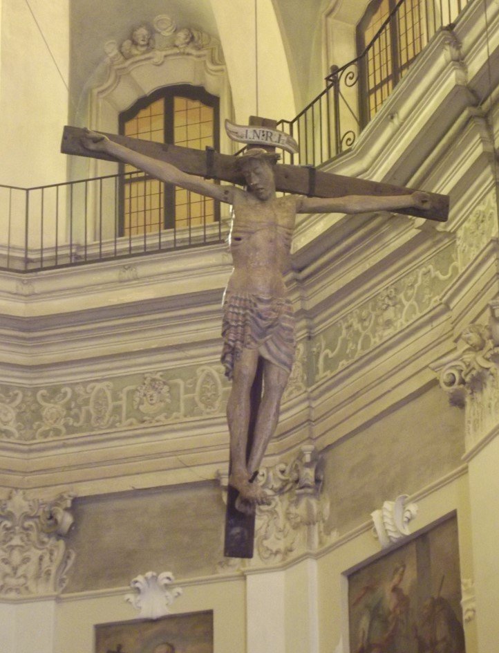 L’antico Crocifisso, risalente al XIII-XIV secolo, è un capolavoro ligneo gotico appeso sopra l’altare.
