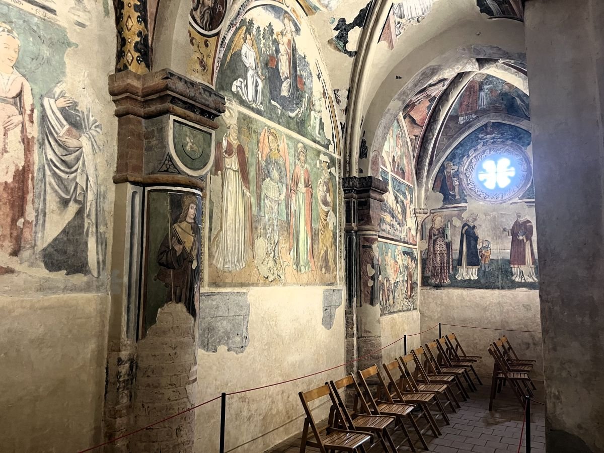 Una antica chiesa dalla semplice architettura che rivela al suo interno importanti affreschi di grande energia spirituale.