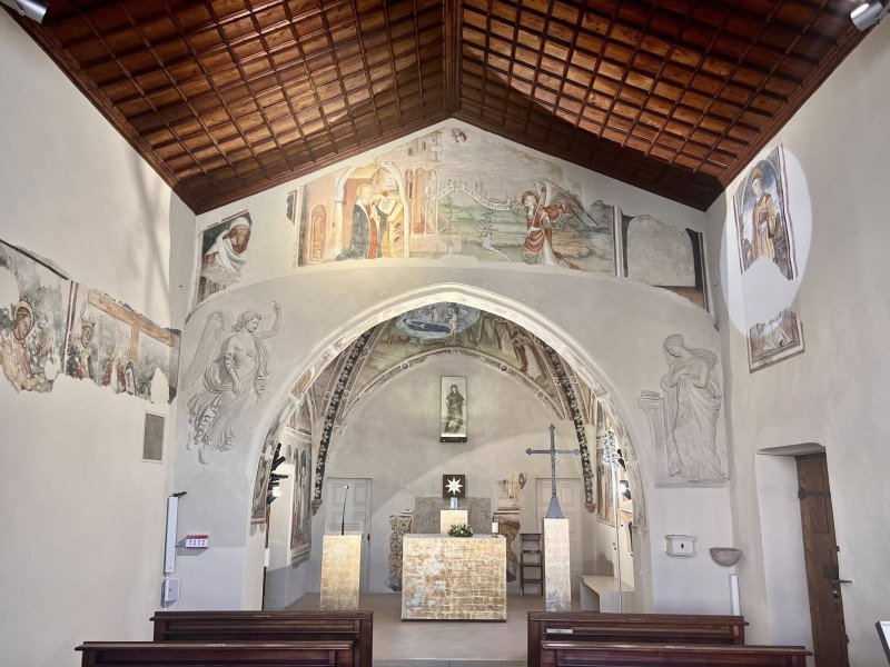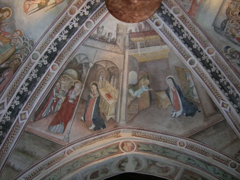 Il presbiterio della cappella è ricoperto da affreschi della seconda metà del Quattrocento, di un ignoto pittore, ma di scuola jaqueriana e che risente di influenze rinascimentali.