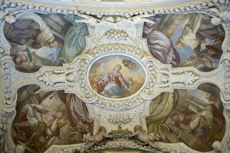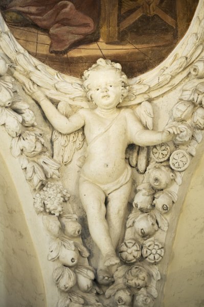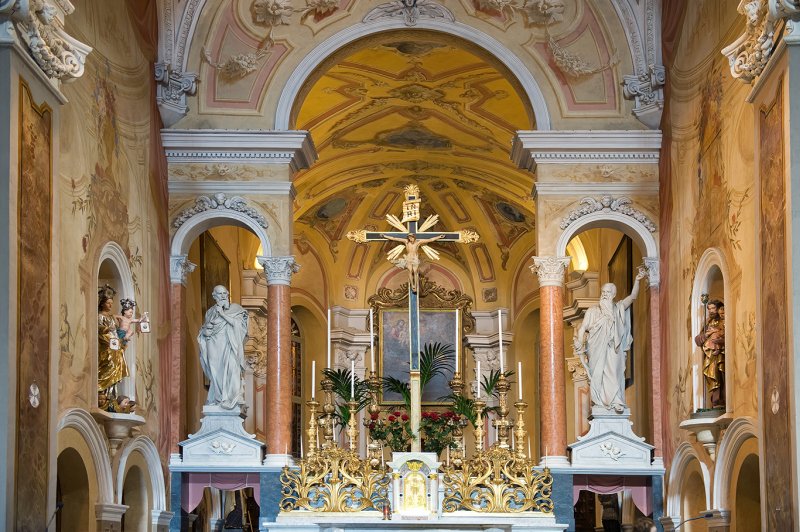 La chiesa è completamente e riccamente decorata con affreschi e stucchi sulle volte della navata, del presbiterio ed in particolare delle cappelle.