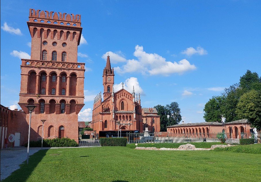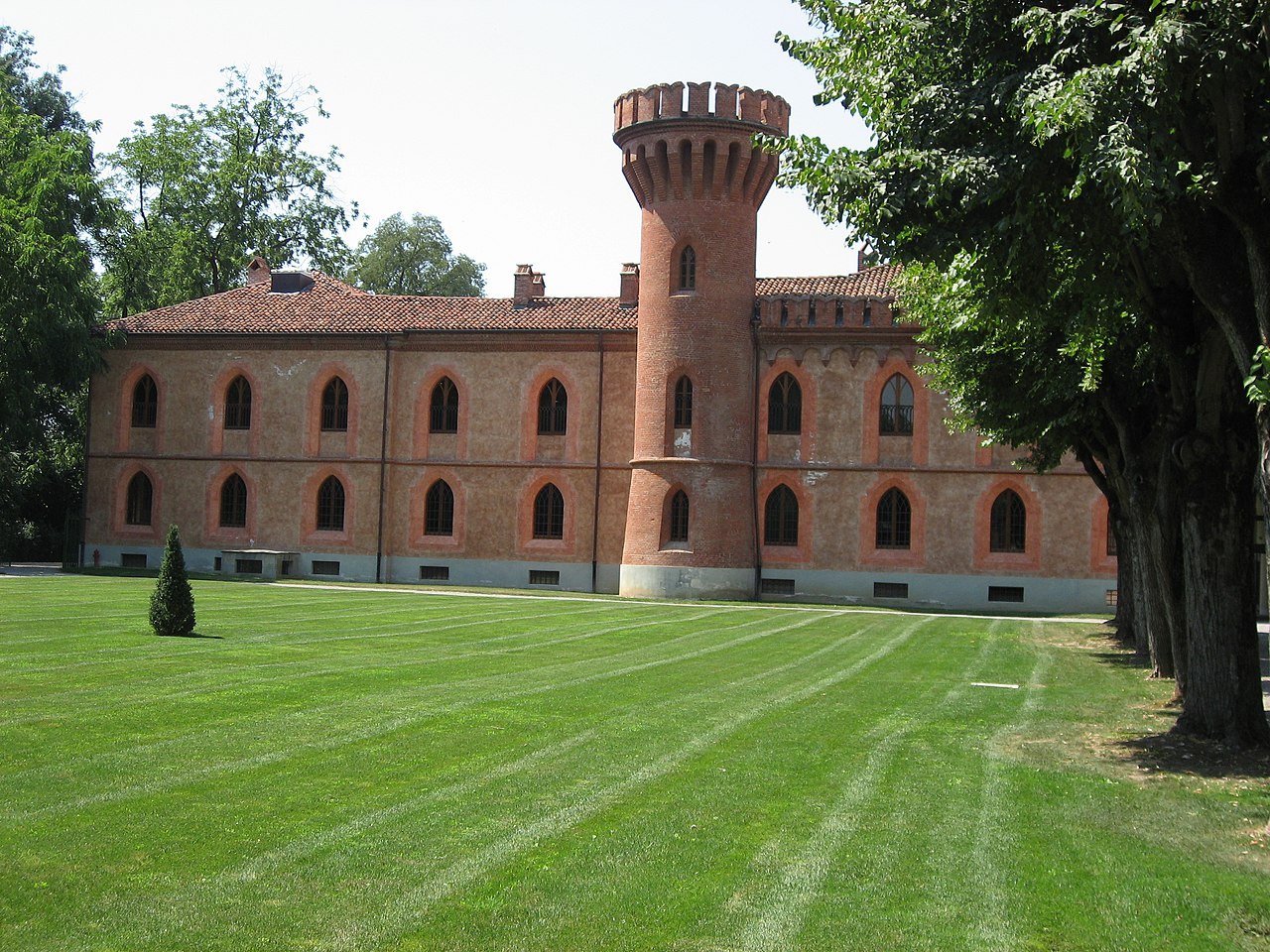 Gli interventi furono di tale portata che comportarono la quasi totale distruzione del borgo medievale preesistente, compresa la chiesa di San Vittore, alcuni insediamenti rurali risalenti al 1300, e la viabilità; del castello restò intatta solo la magnifica torre cilindrica alta 46 metri che ancora oggi ammiriamo. Il complesso architettonico neogotico include anche la piazza, la chiesa di San Vittore e la cascina Albertina.