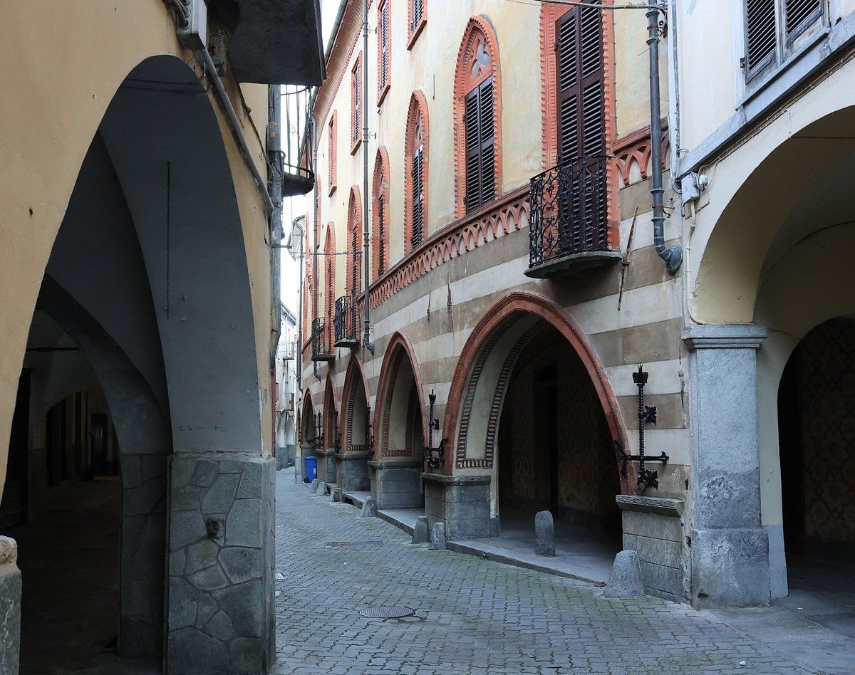 Oltre alle torri, rimane la preziosa testimonianza del tessuto urbano medievale nell’odierna via Caviglione, tipico modello di strada mercantile medievale che presenta un andamento tortuoso, nato dall’esigenza di assicurare una protezione dai soffi della “bisa”, il gelido vento proveniente dalle valli.