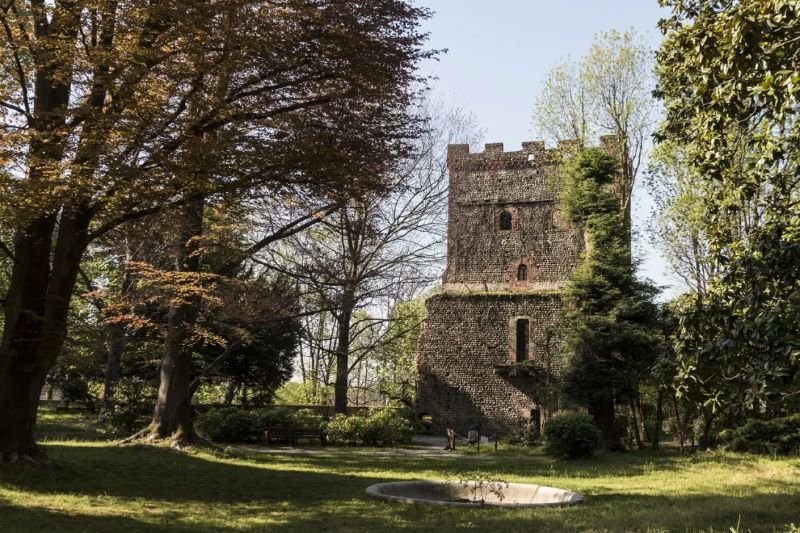 Poco dopo e per successive articolazioni, verranno costruite le alte mura ed il torrione ancora oggi visibile sul fondo del giardino, contraddistinti dalla caratteristica tessitura muraria “a spina di pesce” e dai fregi in cotto.