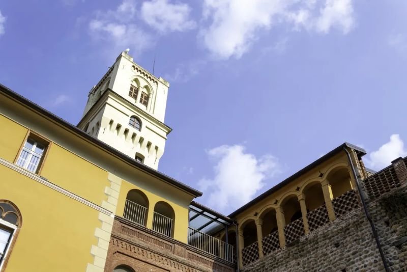 Infine, nel corso dell’Ottocento, grazie al nuovo proprietario, Conte Cesare Della Chiesa di Benevello, altri interessanti restauri investiranno il complesso, tra cui il coronamento della torretta, che si staglia sullo skyline cittadino.