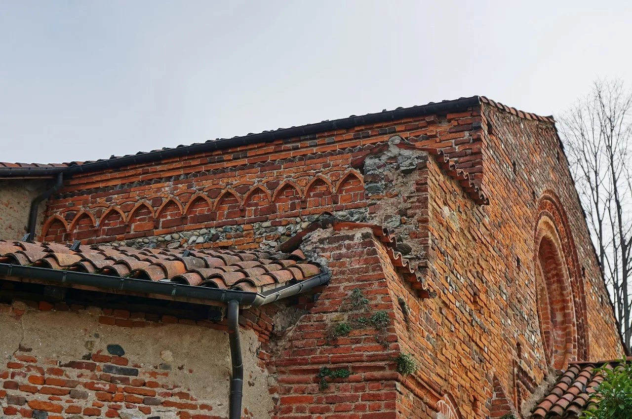 L’abside ottagonale, costruita nella parte bassa in pietra, in alto è in mattoni; i contrafforti che la sostengono sono un esempio unico nel Biellese. Ai fianchi dell’abside, la parete terminale delle navatelle conserva gli archetti pensili. Il campanile è stato ricostruito nel 1722.