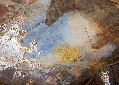 Nel corso dei restauri dei primi anni 2000 è emerso sulla volta uno strato pittorico precedente a quello superficiale e parzialmente conservato. Il vivace affresco, che si è scelto di ripristinare, raffigura gli arredi del Tabernacolo in uno stile particolare e differente dalle decorazioni diffuse nel panorama sinagogale italiano.