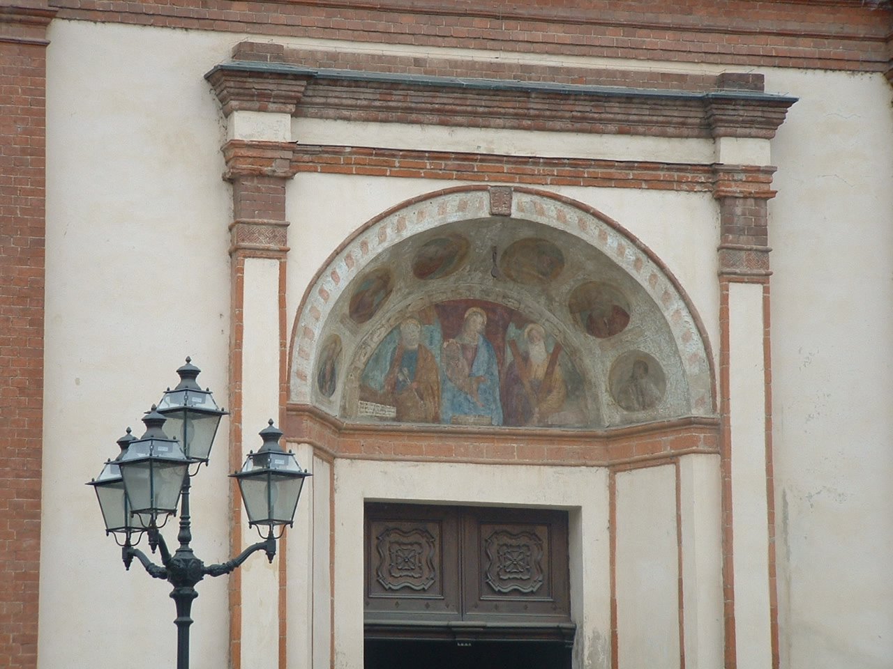 All’interno della Chiesa vi sono diverse importanti opere d’arte cinquecentesche: il secondo altare a destra ha una pala con San Giorgio che uccide il drago, della scuola di Defendente Ferrari. Sotto questa pittura, una Madonna in trono col Bambino della scuola di Gian Martino Spanzotti. L’altare accanto (primo a destra) contiene una Sacra famiglia di scuola piemontese del primo Cinquecento, in cui sono riconoscibili sia i caratteri stilistici dello Spanzotti, sia quelli di Defendente Ferrari.