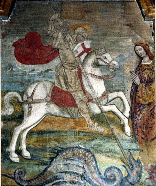 Nel corso del XIV secolo si ritiene che una chiesa sia stata edificata nella piazza centrale del paese, come è testimoniato dal campanile romanico, tuttora esistente. Ne abbiamo un riferimento preciso nell’atto del 1385 con cui Guidetto e Giorgio Biandrate costituiscono loro arbitro Amedeo VII di Savoia per le controversie col Comune; l’atto è stipulato “in curte domus ecclesiae Sanctae Mariae” in San Giorgio, cioè nel sagrato cintato dell’attuale parrocchia. Tra il 1470 ed il 1529, questa chiesa subì un rifacimento quasi totale. La facciata fu considerata (nelle linee di allora) uno dei pochi esempi di chiese inascimentali in Piemonte, ma subì ulteriori ritocchi nel 1684, sia per riparazioni, sia per ampliarla, e poi nuovamente nell’Ottocento con modifica di parecchi elementi decorativi della facciata e posa di nuovi intonaci.