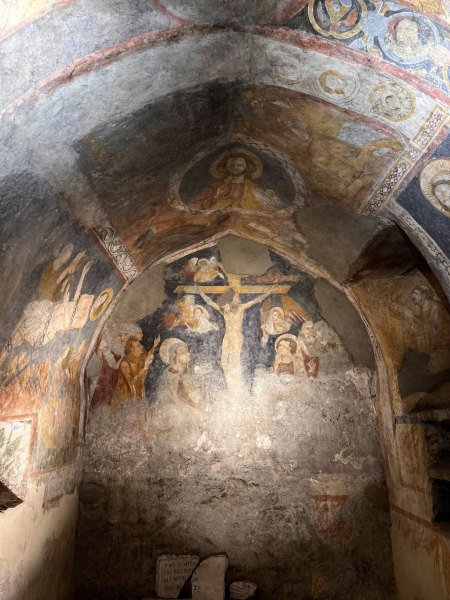 Gli affreschi sono stati realizzati da un artista locale, tra il 1330 e il 1350 che viene ricordato con il nome di “Pittore di Lorenzetto Bertrandi”.