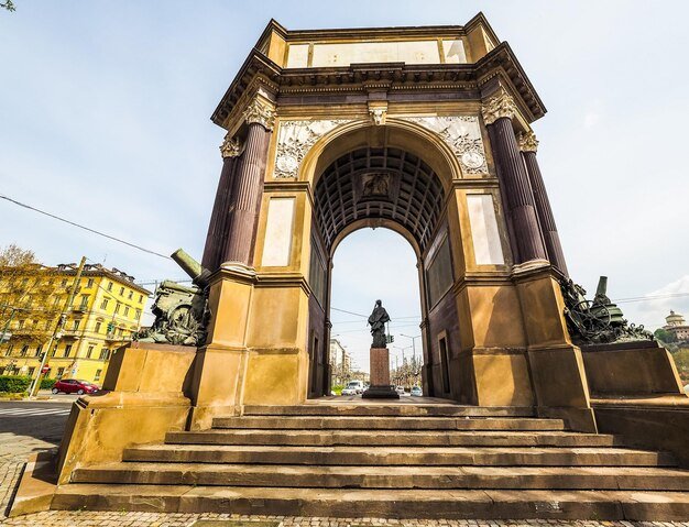 L’Arco monumentale all’Arma di Artiglieria, comunemente noto come “Arco del Valentino”, è una delle opere commemorative più significative di Torino, situata all’ingresso nord del Parco del Valentino, nei pressi del Ponte Umberto I e di corso Vittorio Emanuele II.