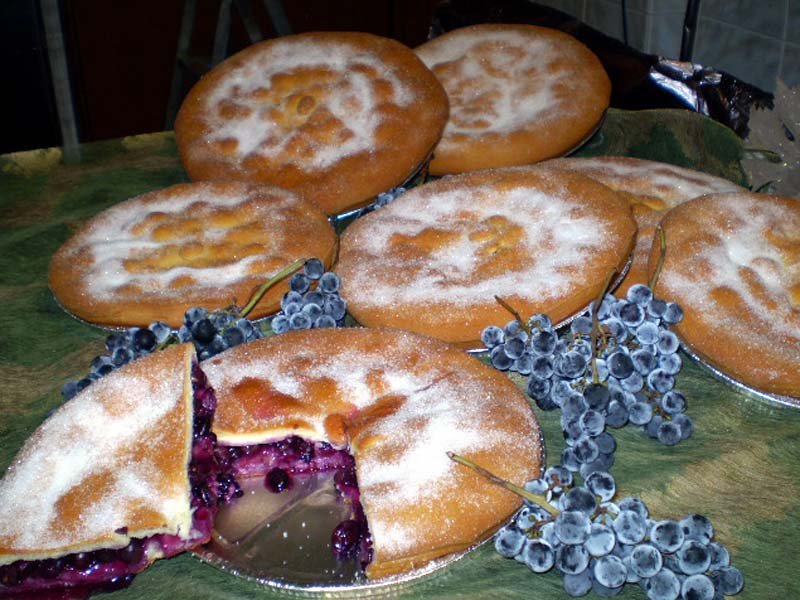 Completare il dolce: Stendete la seconda metà della pasta e coprite gli acini di uva, premendo bene lungo i bordi per sigillare. Cospargete la superficie con un po’ di zucchero e, se desiderate, spennellate con del bianco d’uovo per ottenere una doratura perfetta.