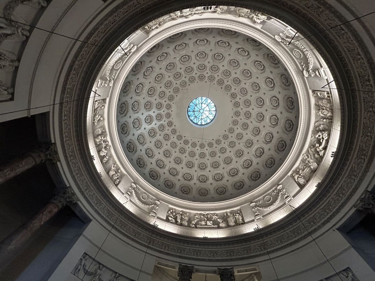 L’interno è a pianta circolare con una grande cupola caratterizzata da cinque ordini di lacunari ottagonali di misura decrescente che terminano con un oculo circolare di oltre tre metri di diametro da cui filtra la luce zenitale. Il 24 giugno un fascio di luce illumina la statua del Patrono di Torino san Giovanni Battista.