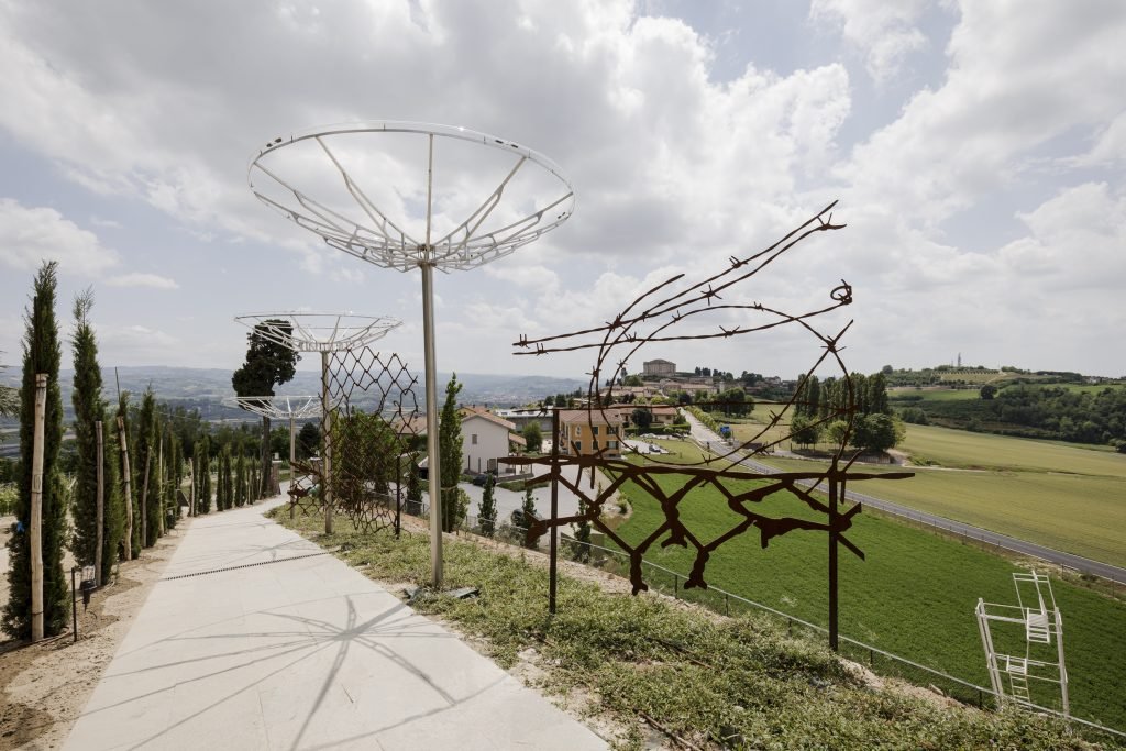 La seconda sede si trova a Guarene CN, nel Palazzo Re Rebaudengo, una residenza settecentesca, tutelata dalla Soprintendenza dei Beni Culturali e Ambientali. È uno degli edifici storici di questo piccolo borgo immerso fra le colline del Roero, territorio che con le Langhe e il Monferrato è riconosciuto come patrimonio dell’Unesco. Nel 2019, poco distante dal Palazzo, la Fondazione ha aperto al pubblico il Parco d’arte della Collina di San Licerio. Le installazioni di artisti di tutto il mondo sono collocate tra un bosco selvatico e i filari di una giovane vigna.