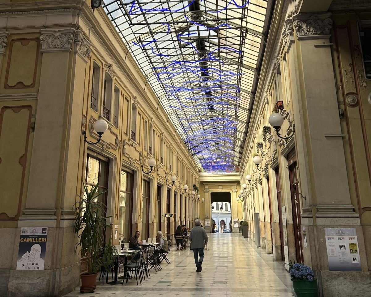 La Galleria è una delle sedi di “Luci d’Artista” dove troviamo l’opera del torinese Marco Gastini intitolata. “L’energia che unisce si espande nel blu” realizzata nel 1998.