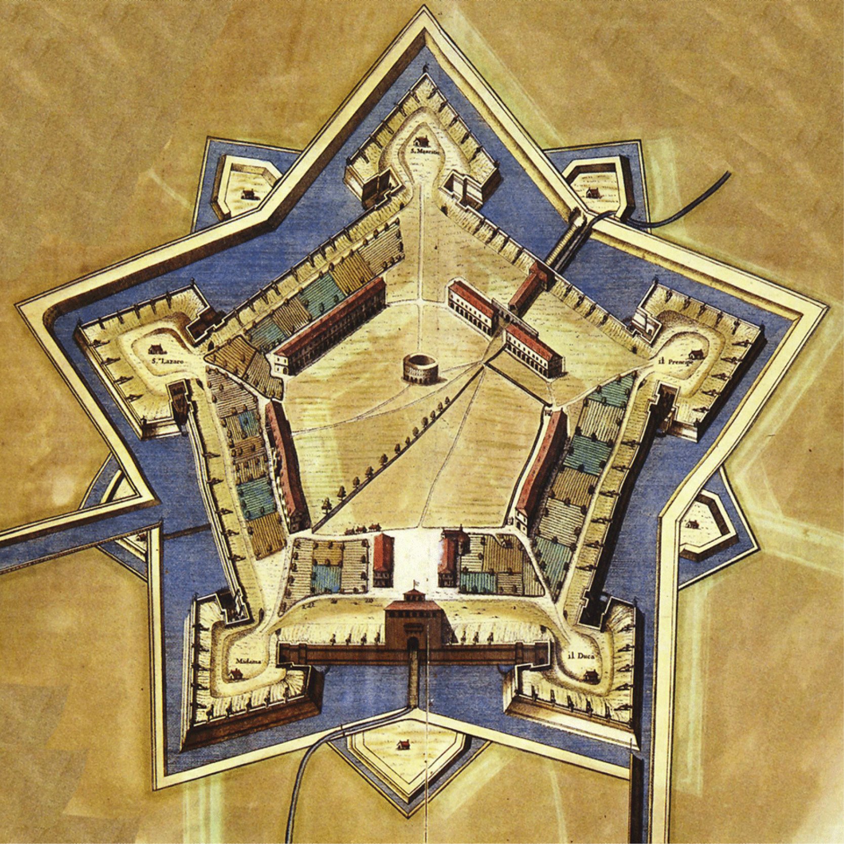 La Cittadella realizzata tra il 1564 e il 1570 era composta da gallerie sotterranee e fortificazioni a vista. All’epoca era considerato lo strumento di difesa più moderno ed inizialmente la costruzione è affidata a Francesco Horologi, che venne poi sostituito da Francesco Paciotto, il quale mantiene però l’idea della cittadella di forma pentagonale.